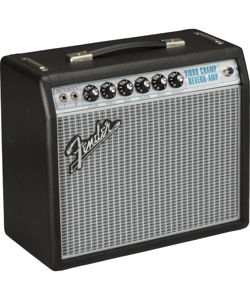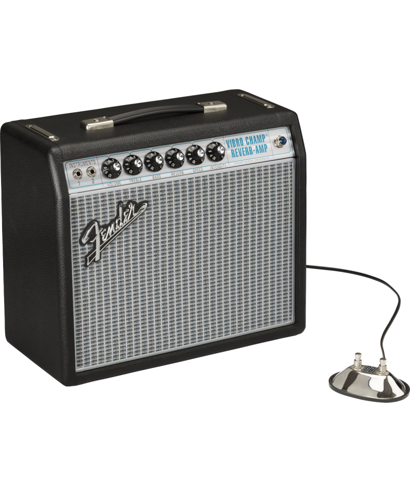 La serie di amplificatori 68 Custom diventata famosissima tra i chitarristi che amano i classici suoni Fender, con utili modifiche perfette per i musicisti di oggi.Con soli 5 watt, il Vibro Champ originale divenne famoso per il classico tremolo Fender, la brillantezza valvolare e la sua eccellente distorsione a livelli moderati. Il 68 Custom Vibro Champ Reverb migliora questo ampli classico aggiungendo un riverbero hall e adottando uno speaker da 10 pi grande per rinforzare la gamma bassa. Diventa cos una piccola meraviglia, perfetto per le prove, l'home recording e anche per i piccoli concerti. L'amplificatore include una cover su misura. Interruttore a pedale opzionale a 2 pulsanti in stile vintage.