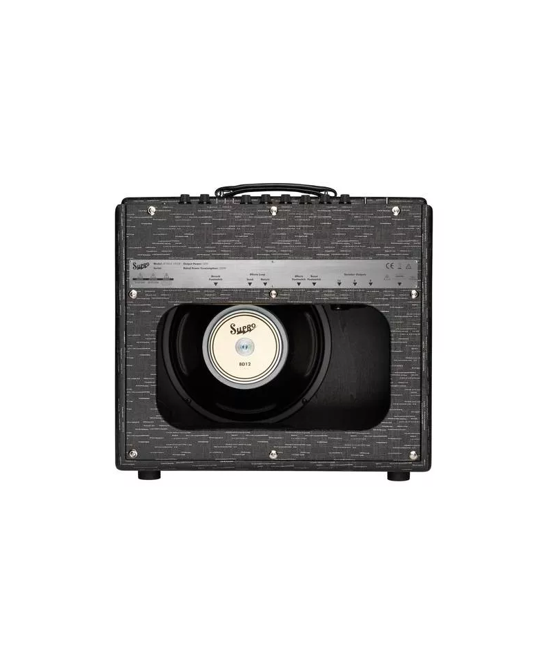 Un amplificatore a valvole da 50W ad alto headroom con un potente equalizzatore, boost selezionabile a pedale, loop effetti con buffer a valvole ed un glorioso riverbero a molla valvolare, il Royale cattura tutte le sfumature del tuo modo di suonare, sia sul palco che in studio. Il finale di potenza 5881 del Royale offre la scelta di un funzionamento in Classe A (35W) o Classe AB (50W), oltre ad un volume principale per controllare il livello di pressione sonora. La modalit in Classe A offre il tradizionale suono Supro catodico con una gamma media audace e spugnosa. La classe AB offre un California-sound basato sulla griglia con una gamma media pi scavata, bassi pi stretti ed una risposta ai transienti pi rapida. Alloggiato in un cabinet in pioppo con tolex Black Scandia di ispirazione vintage e un tessuto della griglia di canapa, il Royale l'amplificatore Supro pi reattivo dinamicamente, ricco di funzionalit e ad ampio headroom fino ad oggi. Dispone di uno speaker Supro BD12 Custom.