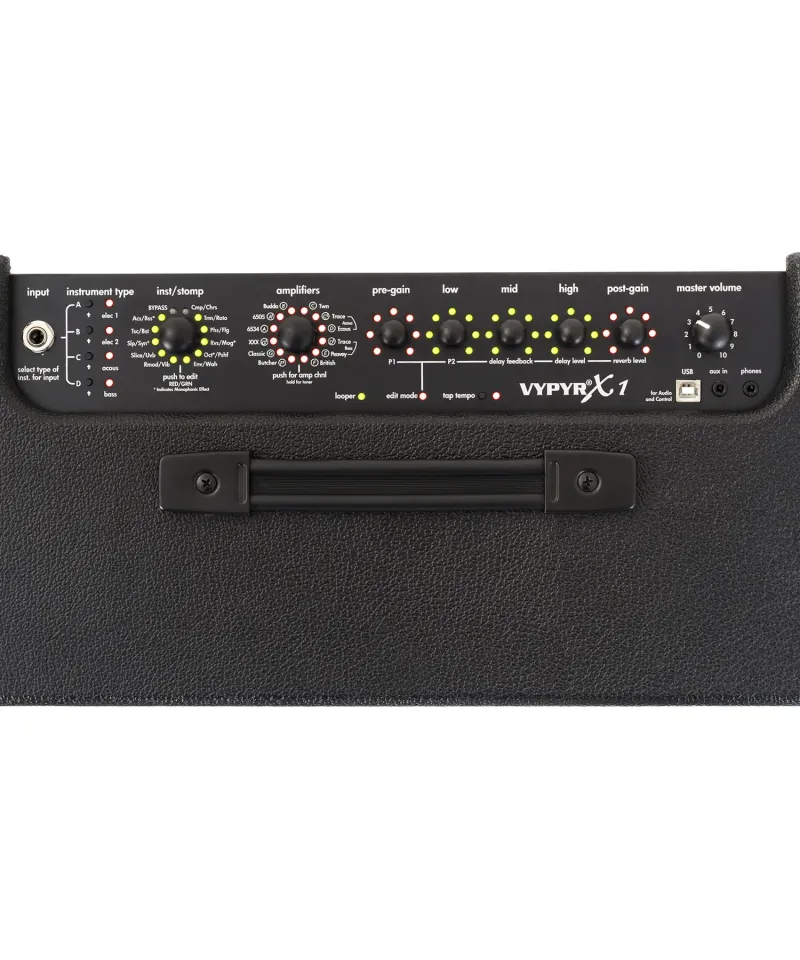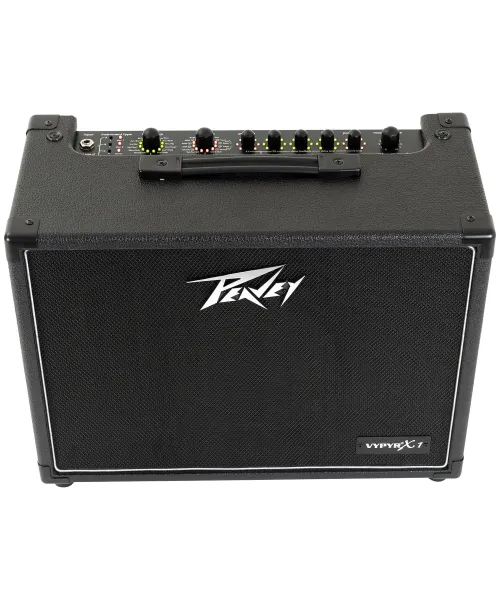Modeling amp combo per chitarra acustica, chitarra elettrica e basso 30W RMS transistor. Serie Vypyr: estremamente leggero, il suo design con parte posteriore semi-aperto migliorare l'acustica ed aumentare il volume. Dotato delle esclusive tecnologie brevettate VIP (Variable Instrument Performance) che permette all'amplificatore di essere utilizzato con chitarre elettriche, acustiche e basso (si adatta automaticamente allo strumento collegato) e Peavey Analog TransTube distortion (emula la circuitazione valvolare). L'interfaccia utente è intuitiva e semplice: Peavey WYSIWYG (What You See Is What You Get). La porta USB integrata: permette di fare il download degli aggiornamenti del firmware, ma anche di registrare il diretta (senza necessità di alcun driver specifico) sul proprio pc come se il Vypyr fosse una normalissima scheda audio.
