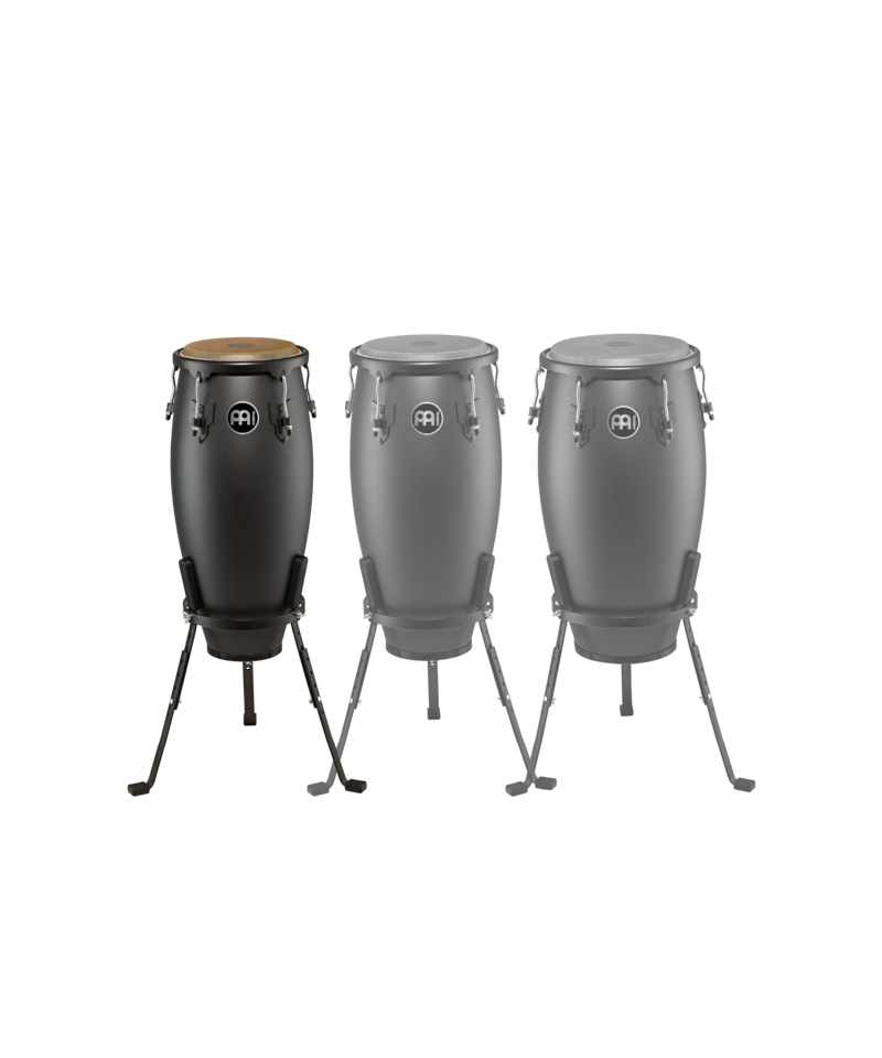 Nino Headliner con finitura Phantom Black (10''''). Le congas Meinl Headliner in quercia del Siam sono perfette. Hanno teste di pelle di bufalo selezionate a mano e hanno supporti individuali rifiniti in nero.
