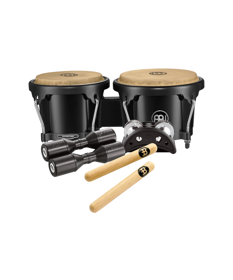- Il set include i bonghi Journey HB50 Series, la Tamburello compatta a piedi CFJS2S-BK , lo shaker SH4BK di Luis Conte Live e le clave di legno classiche CL1HW Classic