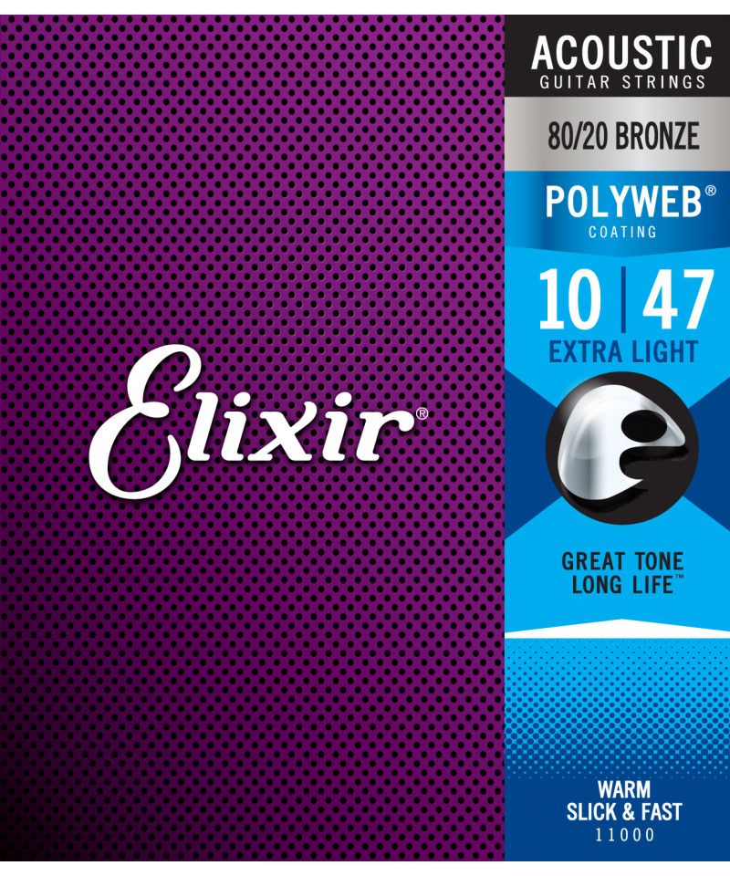 Corde per chitarra acustica con avvolgimento in bronzo 80/20 (80% rame, 20% zinco). Offrono un suono caldo e robusto, come se la corda fosse montata da tempo, ma con una presenza chiara e squillante. Il rivestimento POLYWEB, offre un feeling fluido e veloce per un approccio migliore alle corde. La tecnologia di rivestimento Elixir protegge dalla corrosione e dall'accumulo di sporcizia, prolungando la qualità sonora più di ogni altra corda, coated o uncoated, sul mercato