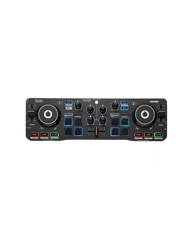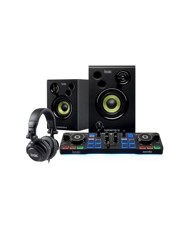 Bundle composto da 1 controller DJ CONTROLLER STARLIGHT + 1 coppia di monitor amplificati DJ MONITOR 32 + 1 cuffia HDP DJ M 40 + 1 software SERATO DJ LITE