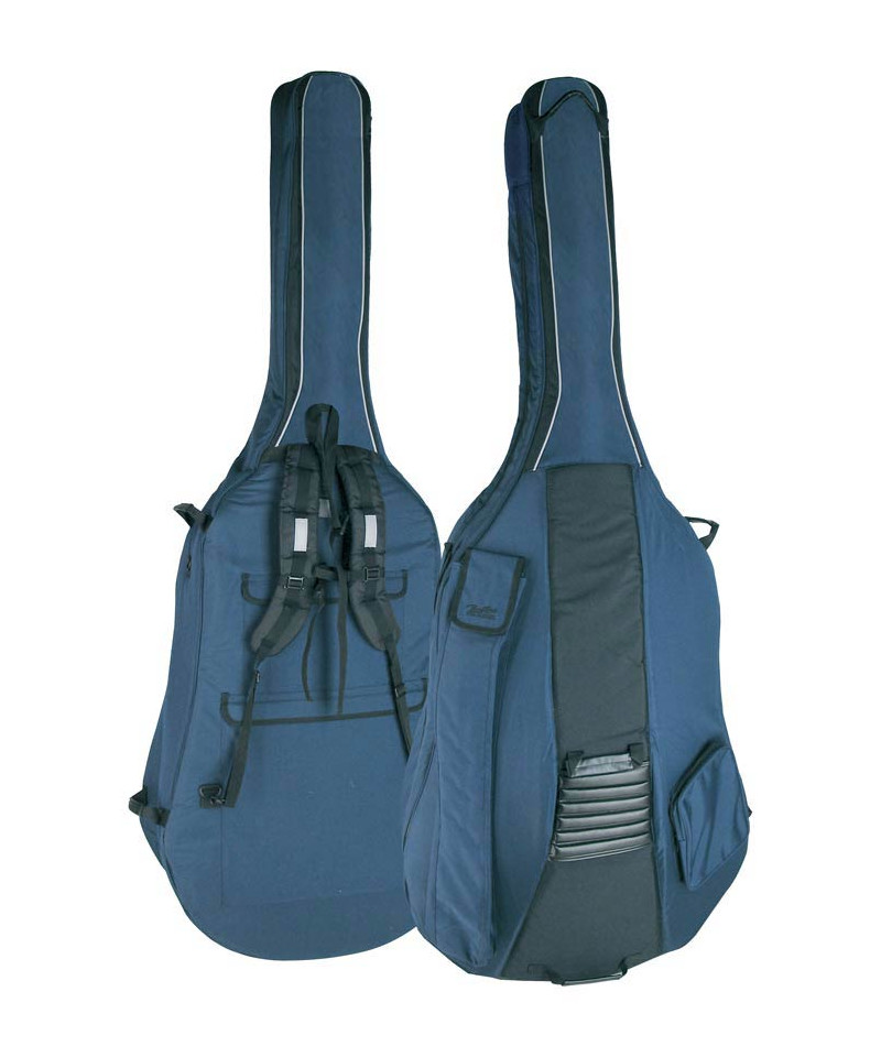 Borsa imbottita per contrabbasso 4/4, imbottitura 23mm, 2 tracolle e una tasca per gli accessori. Colore blu scuro-grigio