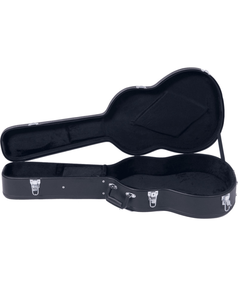 Custodia in legno per Chitarra Classica della Serie Standard di Tobago. Custodia dalla forma perfetta per una Chitarra Classica, rivestita in similpelle nera e con interno nero.
