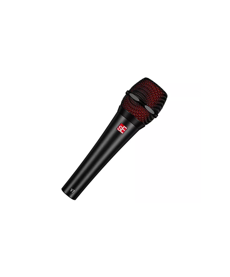 sE V7 è un microfoni dinamico ideali per applicazioni vocali live. Grazie ad un suono neutro e ben bilanciato, ha un'ottima risposta anche con altre sorgenti come ampli per chitarra, fiati, tamburi e cori sia in studio che dal vivo. Il corpo (costruito interamente in metallo) molto robusto, la griglia in maglia di acciaio inossidabile ed i contatti del connettore XLR placcati in oro assicurano lunga durata al microfono senza rischio di corrosione. La costruzione artigianale, come sempre affidata da sE Electronics a personale altamente qualificato, l'utilizzo di magneti al neodimio, la bassa tolleranza in fase di produzione, garantiscono elevata sensibilità, grande qualità sonora ed affidabilità al di sopra la media. Il filtro antivento interno riduce i disturbi indesiderati ed ha anche funzione di anti-pop, attenuando le consonanti plosive in maniera molto efficace. Grazie all'unica ed innovativa bobina in alluminio il V7 presenta un suono aperto e brillante in grado di esaltare la voce come non mai prima. Il design sofisticato della capsula con diagramma polare super cardioide aiuta ad isolare la voce dagli altri strumenti sul palco. Inoltre riduce in maniera molto efficace i rientri dagli altri strumenti ed assicura elevati valori di gain prima del feedback.