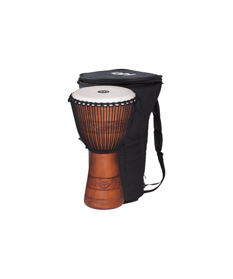 Djembe di legno e custodia misura 12''''. Dotato di teste in pelle di capra selezionate a mano e di corde in nylon per un'accordatura ottimale. Gli stupendi djembes della serie Meinl Headliner si distinguono per la loro grafica tradizionale ed esotica. 100% meticolosamente lavorati a mano secondo gli alti standard di qualit Meinl.