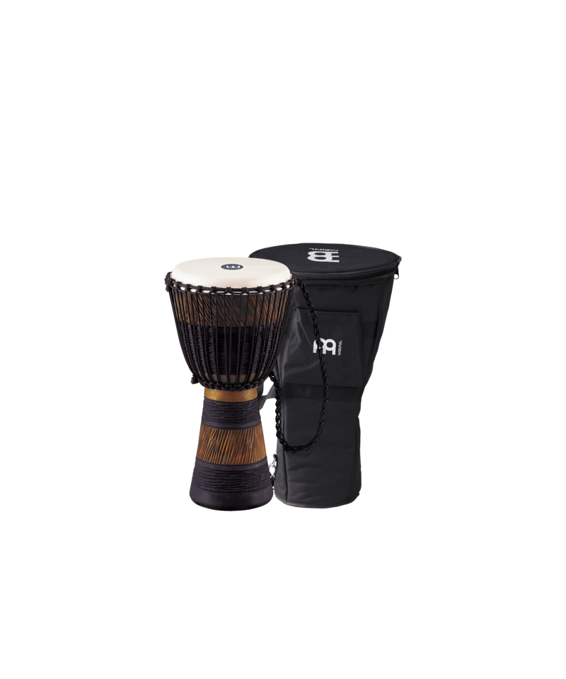 Djembe di legno e custodia misura 10''''. Dotato di teste in pelle di capra selezionate a mano e di corde in nylon per un'accordatura ottimale. Gli stupendi djembes della serie Meinl Headliner si distinguono per la loro grafica tradizionale ed esotica. 100% meticolosamente lavorati a mano secondo gli alti standard di qualit Meinl.