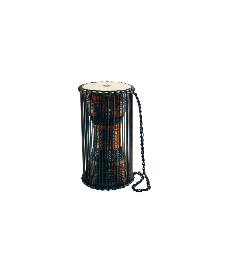 Tamburo a mano africano 8'' x 16'', con 28 corde di tensione di 3 mm ciascuna. Scolpito da un pezzo solido della nostra piantagione di mogano. Teste di tamburo in pelle di capra selezionate a mano.