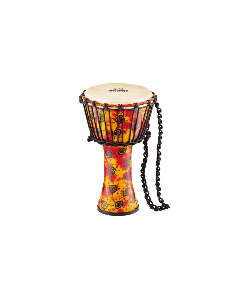 La nuova linea di djembe con sistema di accordatura a corda Nino è realizzata con materiale sintetico brevettato che ci consente di creare un djembe estremamente leggero. Per questo motivo, questi tamburi sono un'ottima scelta per i bambini, soprattutto nelle scuole e negli ensemble di percussioni. La membrana in pelle di capra selezionata a mano produce un suono caldo, tipico del djembe tradizionale. La versione con pelle sintetica lo rende perfetto per essere suonato all'aria aperta, dato che non risente degli effetti del clima.