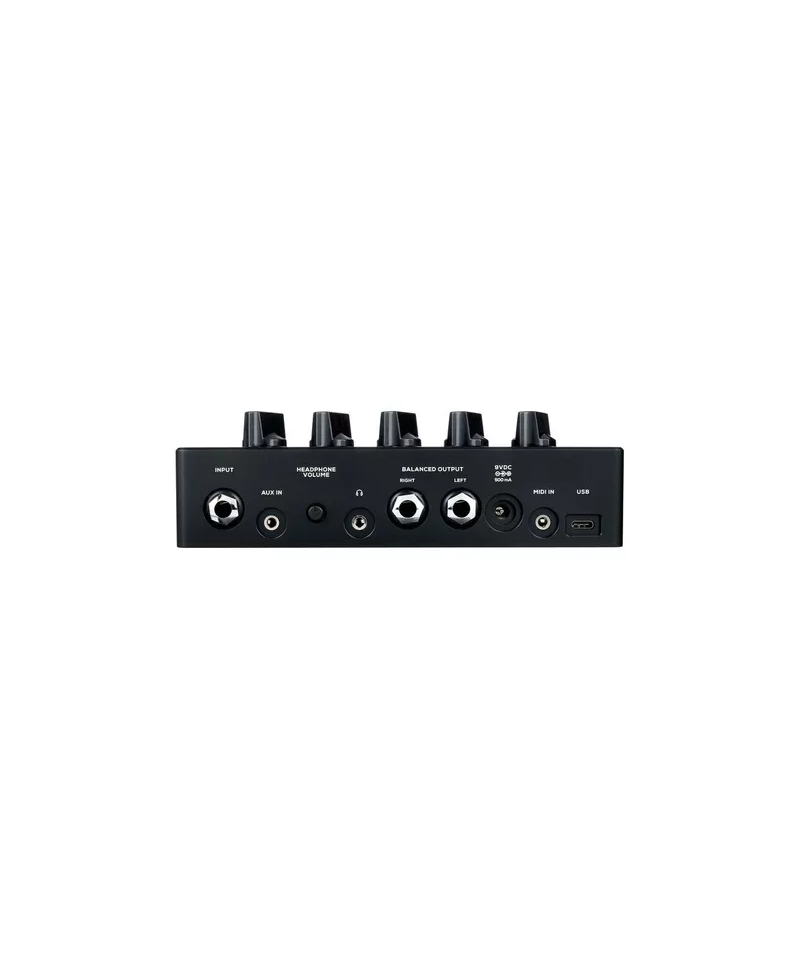 - USB-C (interfaccia audio e controllo aggiuntivo tramite Darkglass Suite), MIDI In (1/8"), ingresso 9V CC (centro -)