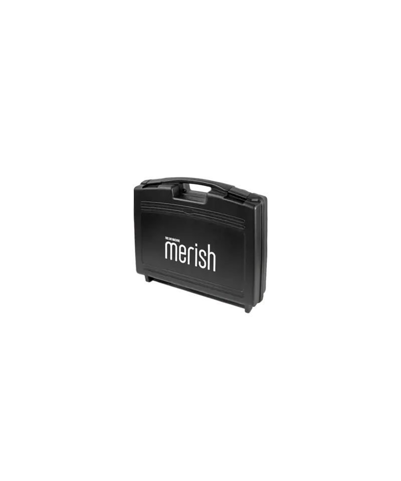 Una maneggevole valigia in polipropilene di colore nero dotata di due clip per l'apertura e la chiusura e predisposta per l'inserimento di un lucchetto. Dispone di inserti interni di spugna perfettamente sagomata che offrono la migliore protezione del Merish e di un pratico manico per una presa ed un comfort ottimi.