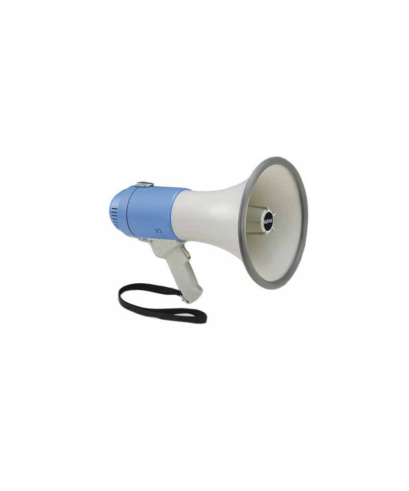 E’ costruito in materiale antiurto e dispone di protezione sulla tromba esponenziale. Monta un potente amplificatore da 25 Watt