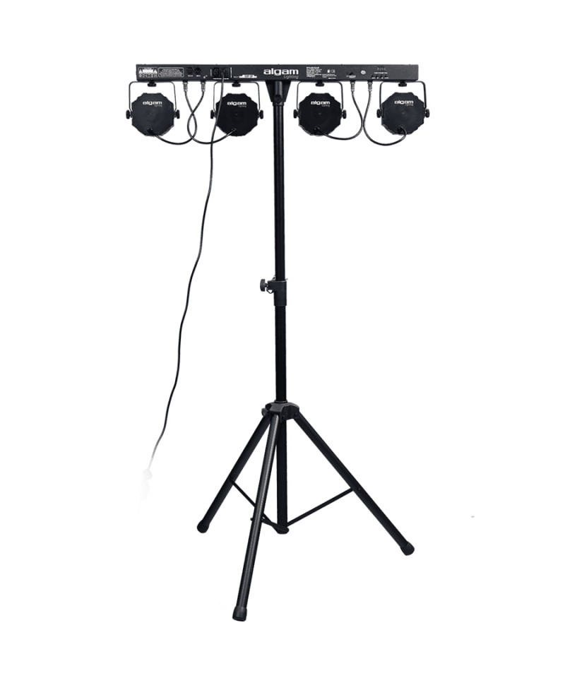 Stage-Bar il set d'illuminazione Algam Lighting composto da quattro Par LED RGB e quattro LED bianchi per l'effetto Strobo montati su un supporto telescopico. La confezione include una pedaliera wireless per il controllo dei proiettori e una costodia morbida per il trasporto del set. Grazie al microfono incorporato che ti permetter di essere sempre sincronizzato con la musica circostante e alle modalit di funzionamento master/slave, audio, automatico e DMX, Stage-Bar il pacchetto completo perfetto per illuminare il palcoscenico.