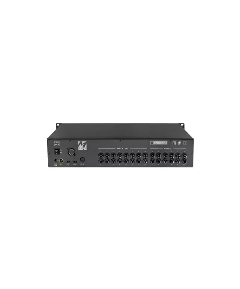 - Interfaccia audio professionale: 16 uscite audio bilanciate (Jack 6,35mm), 12 ingressi di linea (Jack 6,35mm mono, non bilanciati).