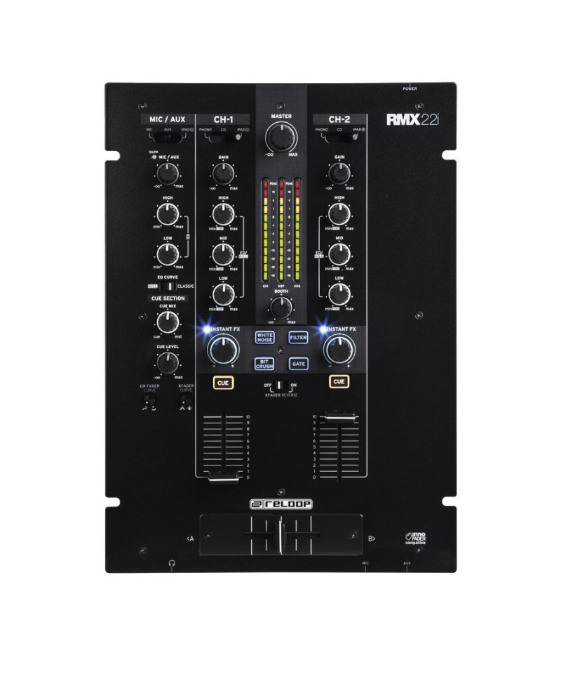 Mixer professionale per DJ a 2+1 canali, con architettura completamente digitale e suono di elevata qualit, 4 effetti DSP (filter, white noise, bit crusher e gate) con controllo Instant FX per ciascun canale, EQ a 3 bande con funzione kill per i canali 1-4, canale MIC / AUX / iPAD con EQ a 2 bande, fader reverse, curva regolabile per fader e crossfader, faderstart per fader e crossfader, 5 ingressi Line (di cui uno splittato per iPad, tablet e smartphone), 2 Phono, 1 Aux RCA, 1 Combo-Mic, uscite Master 1 con connettori XLR (bilanciati), Master 2 RCA, Booth RCA, 2 uscite cuffie (in formato jack e mini-jack), dimensioni 254 x 104 x 355 mm, peso 3.7 kg.