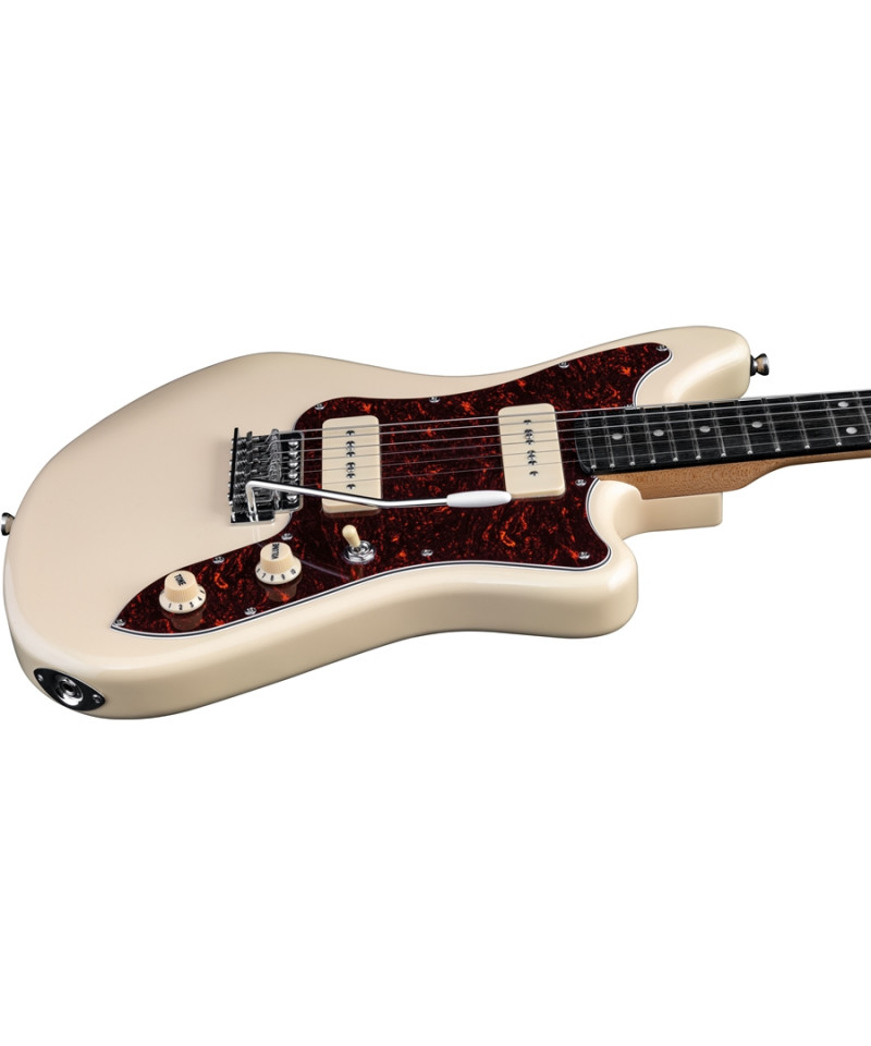 La chitarra elettrica Camaro VR 2-90 di Eko Guitars nella colorazione Cream spicca per la configurazione dei Pickup P-90 gestibili con il selettore a tre vie e per la paletta abbinata alla tonalit crema del corpo. Le moderne Camaro di Eko Guitars, ispirate allo storico modello anni '70, si presentano in tutte le colorazioni disponibili, con body in pioppo, legno apprezzato per la sua leggerezza, manico in acero e tastiera in South American Roupan. Nei modelli Cream e Blue Sparkle i due pickup P-90 e la paletta abbinata al corpo, donano alla Camaro un look credibile dal profumo seventies.