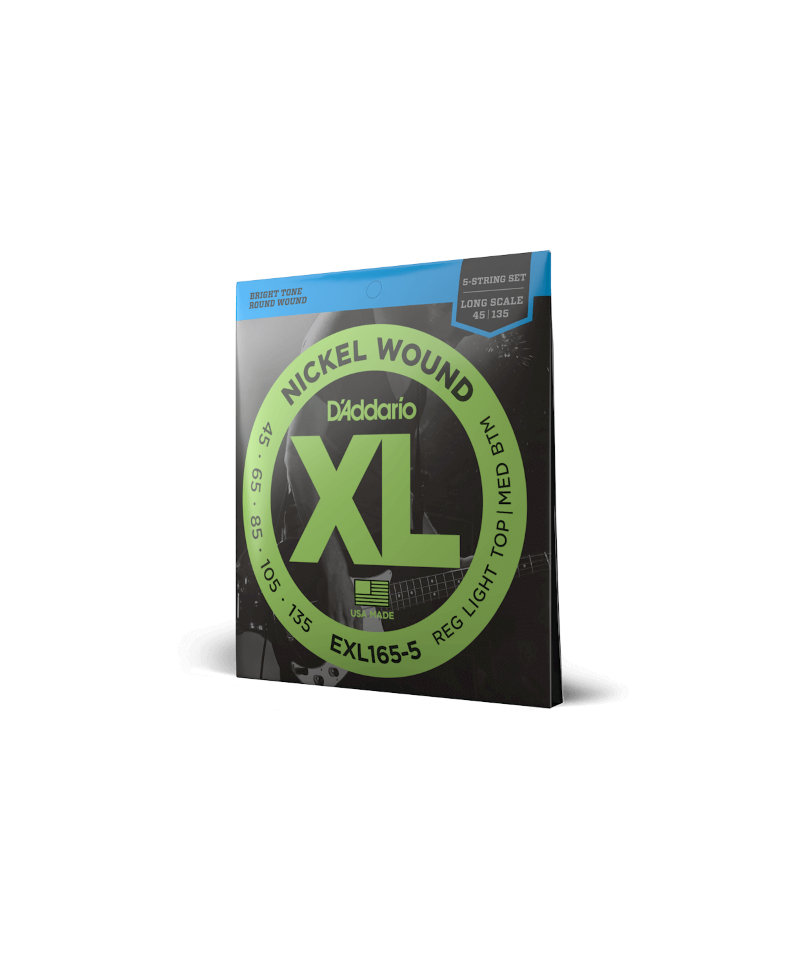 Le EXL165-5 sono la versione a 5 corde delle più popolari D'Addario ibride che combinano le corde alte di una EXL170 (.45 e .60) con le corde basse di una EXL160 (.85 e .105). Con l'aggiunta di un Si basso .135, questo set è ottimale per i bassisiti in cerca di una combinazione ideale di comfort, fondamentali nitide e bassi profondi. Si adattano ai bassi con una lunghezza della scala fino a 36.25" (920mm).