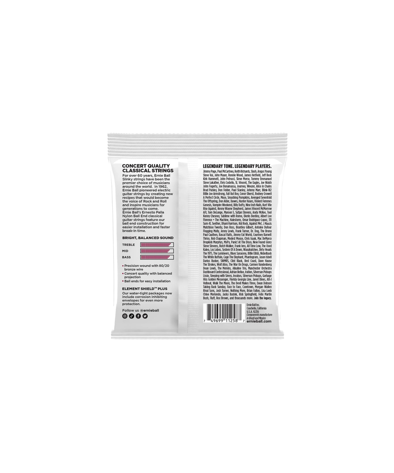 3409 è il pack da tre set di corde per chitarra classica della serie Ernesto Palla Black and Gold Ball End Nylon con scalatura 28-42 di casa Ernie Ball. Sono costruite con un unico filamento in nylon. La quarta, quinta e sesta corda avvolte Silver sono realizzate in rame argentato avvolto su un'anima in nylon e offrono una timbrica morbida e ricca.