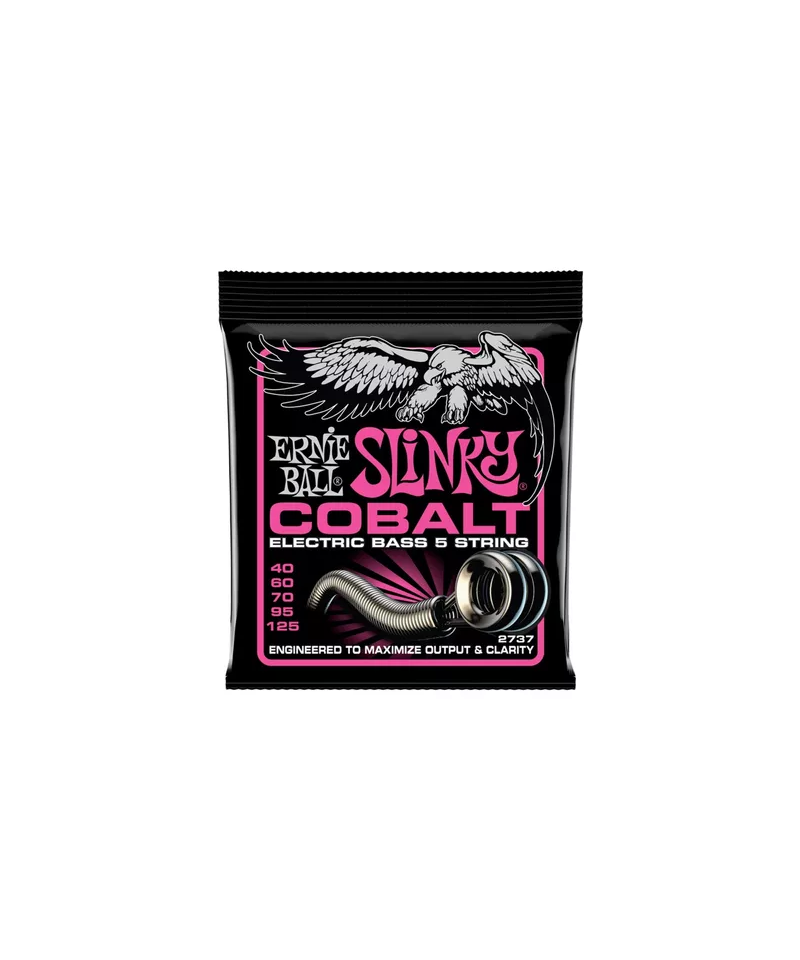 2737 Bass 5 Super Slinky Cobalt è il set di corde per basso elettrico a 5 corde della serie "Expanded Cobalt Slinky" di Ernie Ball con scalatura 40-125. Sono realizzate con un filo avvolgente brevettato in cobalto, attorno a nuclei esagonali stagnati, per garantire una migliore resa e chiarezza di tono.