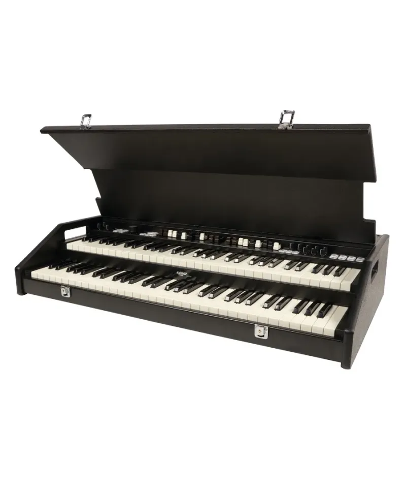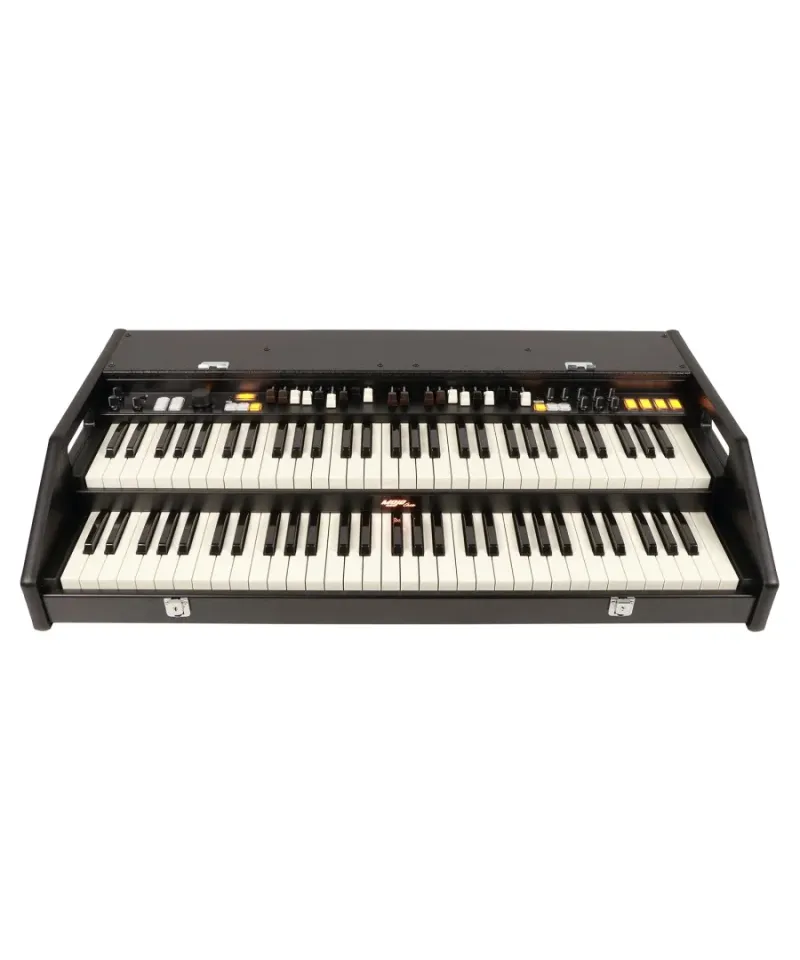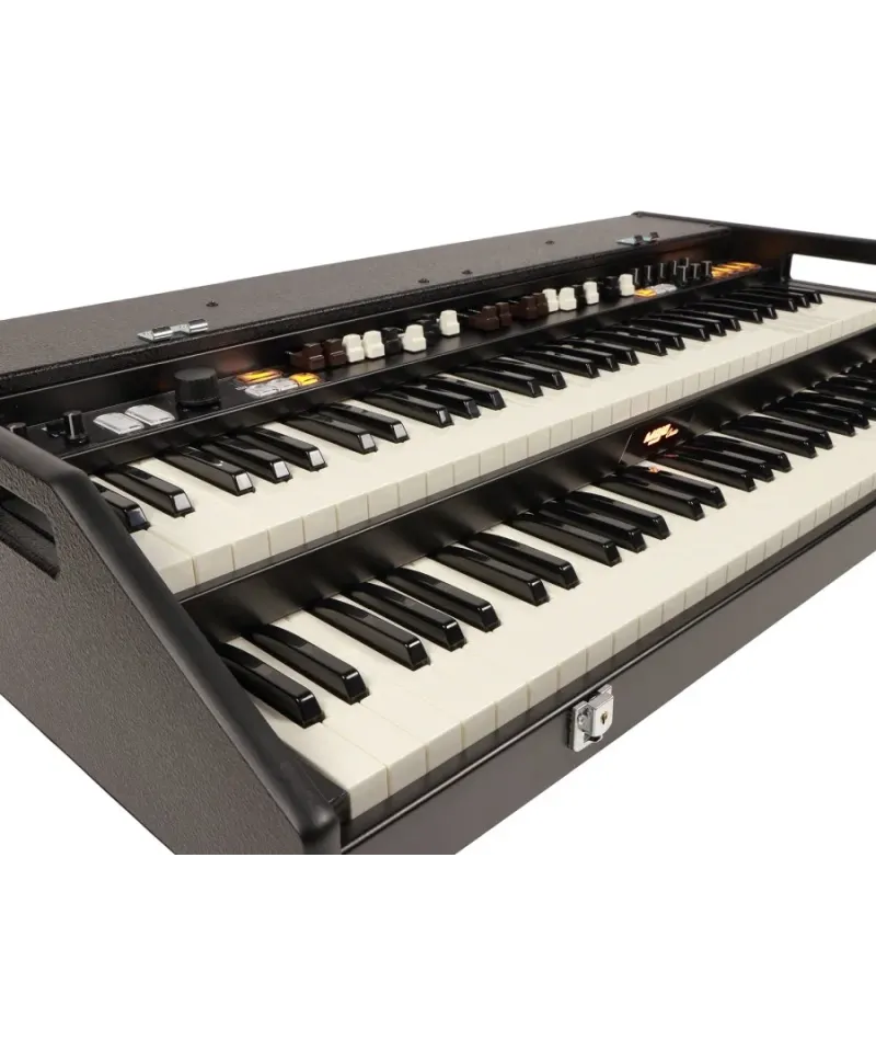 - Organo a doppio manuale con due tastiere waterfall a 61 note, 5 ottave da Do a Do semi-pesate e sensibili alla velocity