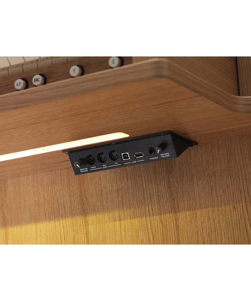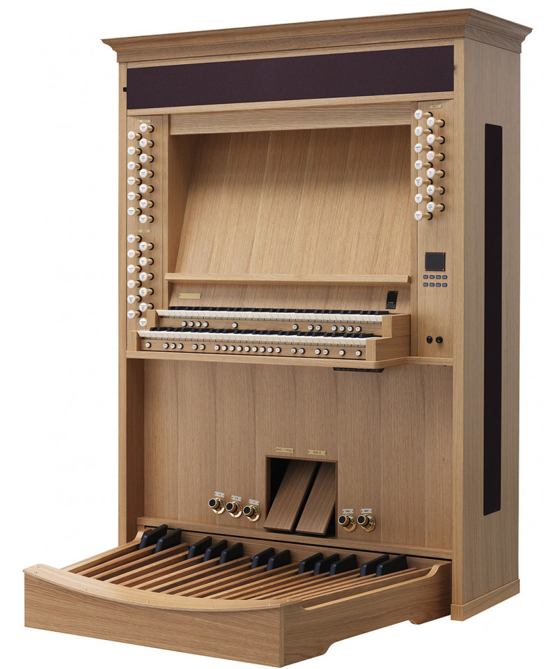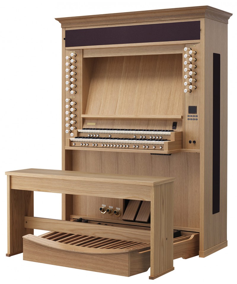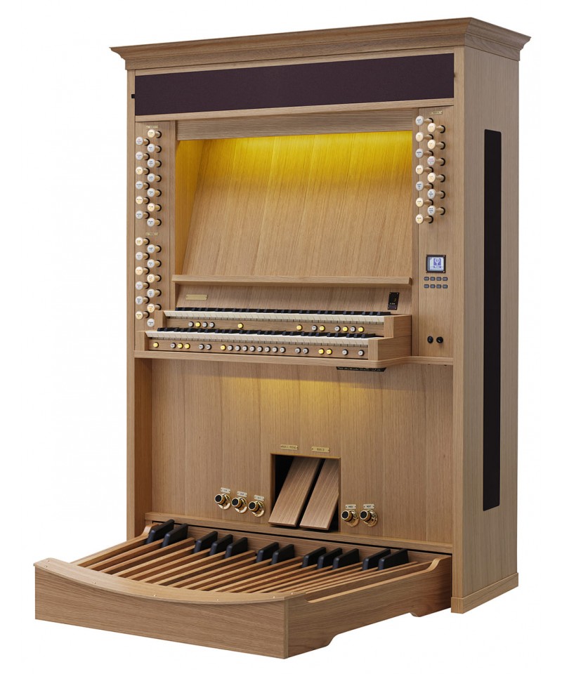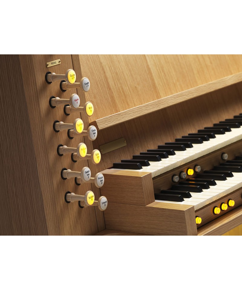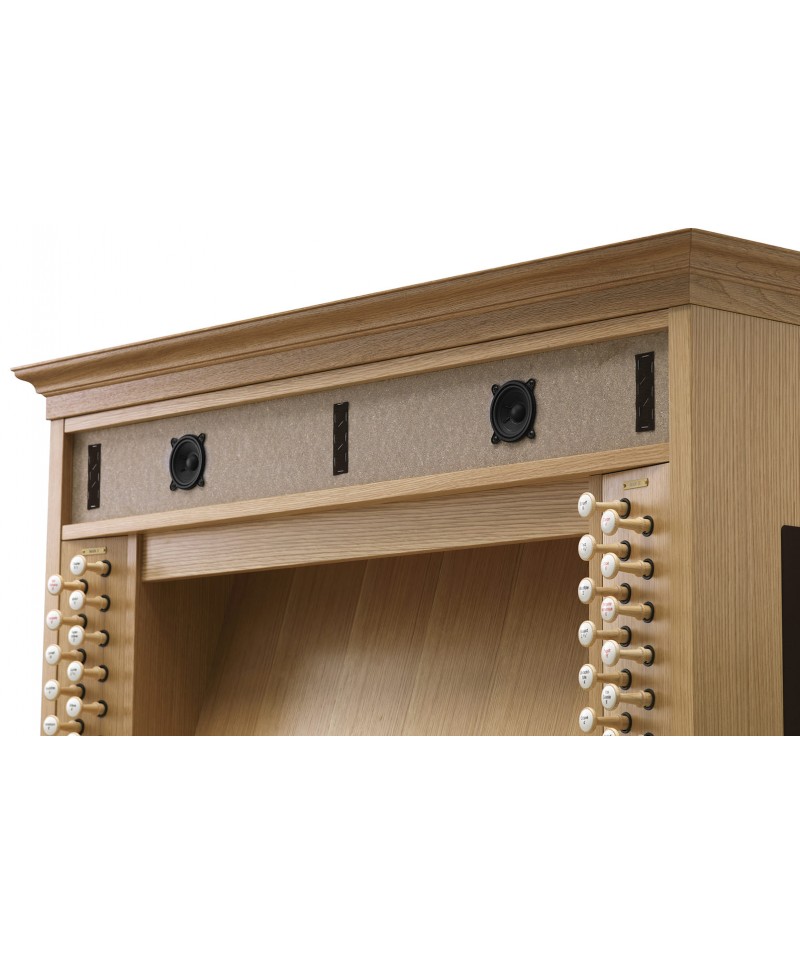 Il più ampio suono d'organo in un mobile stile positivo con tecnologia Physis®! Grazie al suono proveniente dal basso, dallalto, dai lati è possibile simulare le riflessioni multiple delle pareti, del soffitto e del pavimento di un grande ambiente riverberante. Il nuovo sistema 'Pipe-organ real audio rendering' (con 6.1 canali e 9 altoparlanti) proietta lorganista al centro della scena per una nuova e coinvolgente esperienza sonora. Disponibile con mobile con finitura in legno di rovere (Sonus P235 Dlx).