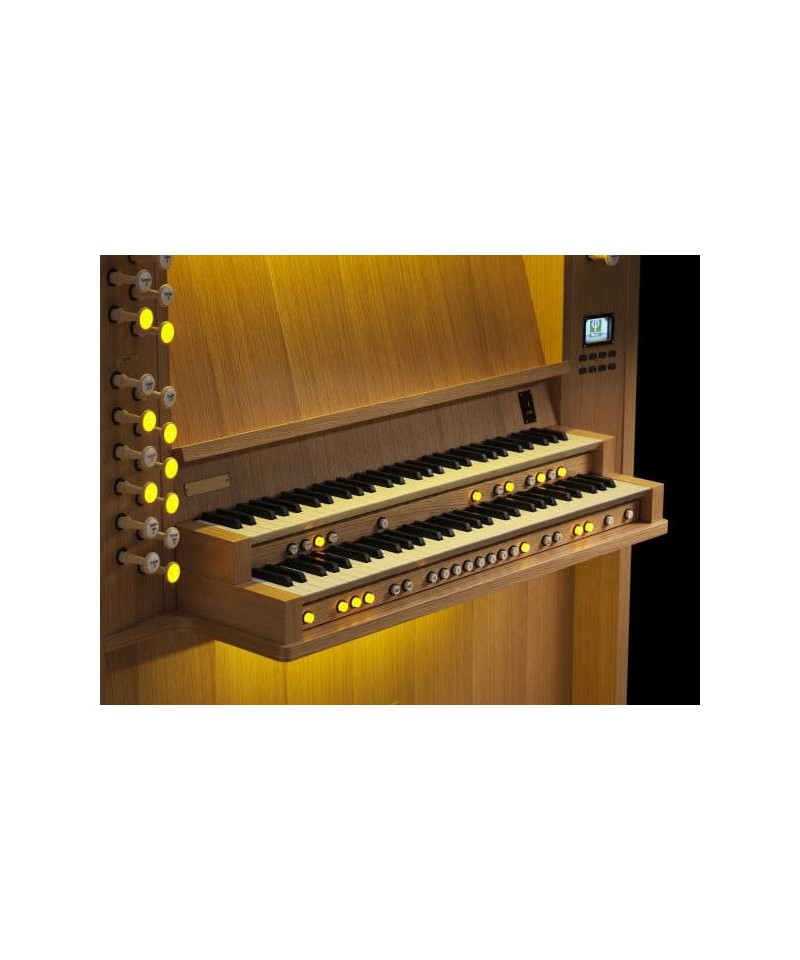 - Manuali 2x61 note, tastiere per organo con effetto "tracker touch", sensibili alla dinamica per MIDI e voci orchestrali
