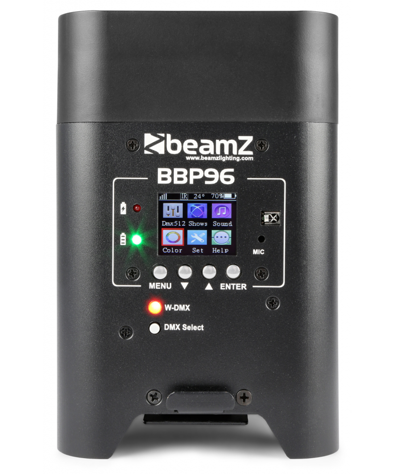 Il BBP96 un par batteria ideale per luso come un uplighter. Il BBP96 dotato di una batteria da 10 Ah che durer pi di 16 ore con una carica completa. Il piedino regolabile pu essere fissato in diversi angoli per il posizionamento angolare del par.