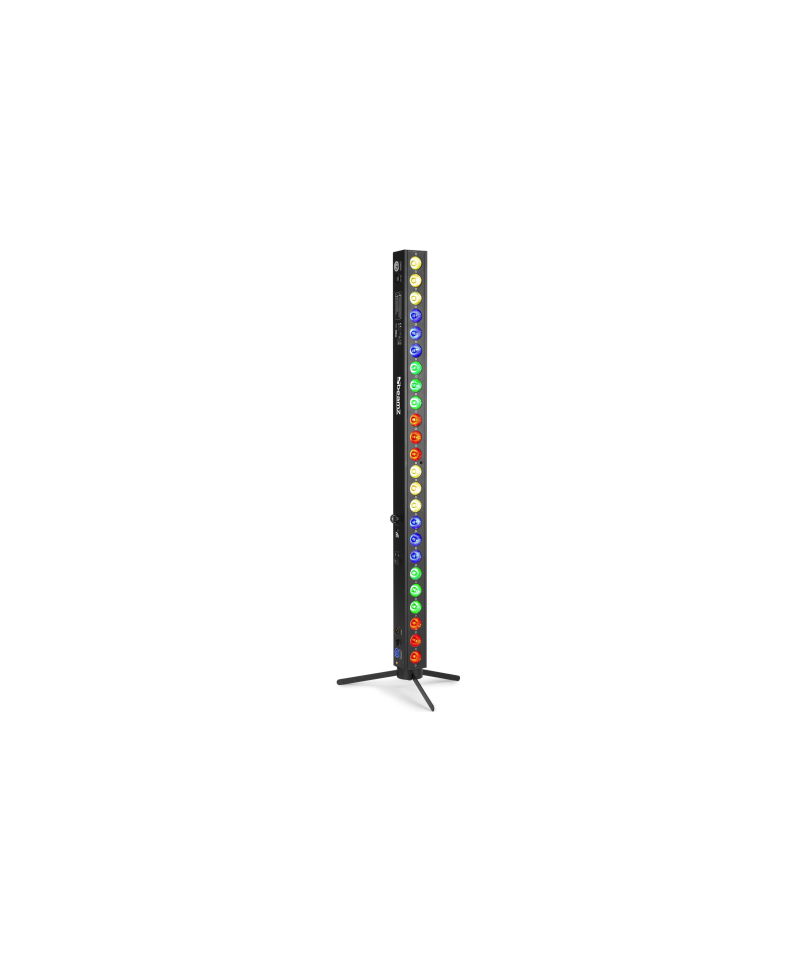 BBB243 una barra LED compatta e leggera ricaricabile a batteria al litio che offre una vasta gamma di miscelazioni cromatiche RGB per il lavaggio del palcoscenico o delle pareti, con la libert di installare il dispositivo dove desideri senza problemi con i cavi. La batteria al litio integrata manterr una carica fino a 10 ore (singolo colore) da una singola carica completa. Pu anche essere collegato alla rete elettrica con il cavo incluso per una potenza illimitata. BBB243 pu essere sfruttato in diversi modi: utilizzare uno dei suoi programmi automatici, la modalit musica o la modalit DMX (e DMX wireless). Ideale per l'uso in piccoli spazi, palcoscenici, ristoranti e caffetterie