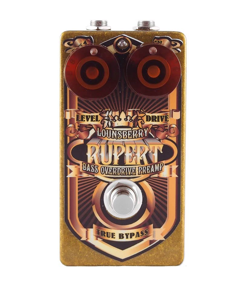 Pedale boutique ''Rupert'' in versione realizzata interamente a mano ''point to point'' su un circuito stampato Fish Paper. Il Rupert un preamp/overdrive per basso e synth bass, multistadio FET con diodi al germanio, true bypass, output 2 per registrazione diretta ''FET sempre attivo'', presenta un controllo di tono e un controllo di volume, alimentazione 9v. Realizzato a mano in USA da Greg Lounsberry, chassis realizzato dall'artista Mark Hershberger. Il Rupert Bass Overdrive un preamp overdrive dal suono talmente caldo da sembrare un amplificatore valvolare. E' un pedale dalla grande risposta dinamica che pu passare da suoni caldi e semi puliti a crunch ''fuzzosi'' da arena rock anni '60. L'output 1 permette uno switch true bypass, mentre l'output 2 mantiene attivo il preamp FET per il direct recording.