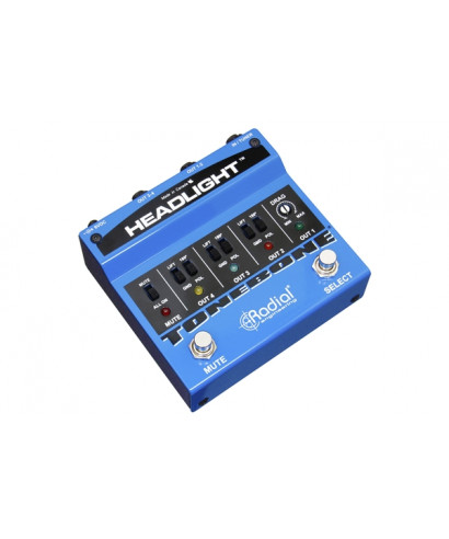 Headlight™ è un selettore di amplificatori per chitarra a gain unitario progettato per integrarsi facilmente in una pedaliera e permettere all'artista di scegliere in modo trasparente tra un massimo di quattro amplificatori utilizzando un unico interruttore a pedale. La magia dietro il design compatto è la combinazione delle prese di uscita da ¼ e un interruttore a pedale sequenziale innovativo che avanza attraverso le uscite collegate a seconda di quanti amplificatori sono connessi. È sufficiente premere sul pedale per passare da una uscita a quella successiva. Questo consente a Headlight di essere utilizzato con uno, due, tre o anche quattro amplificatori. I LED ad alta visibilità segnalano istantaneamente lo stato delle uscite sui palchi più bui.