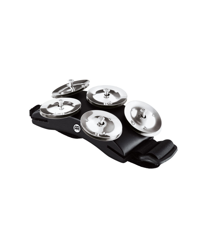 TAMBURELLO PER Cajón. Il tamburello da piede CFT5-BK Meinl offre un suono brillante e ritmico. Un elastico permette di posizionare rapidamente e facilmente il tamburello sul piede in modo che un leggero movimento sia sufficiente per far vibrare i sonagli in acciaio inossidabile. Adatto a tutti gli stili musicali.