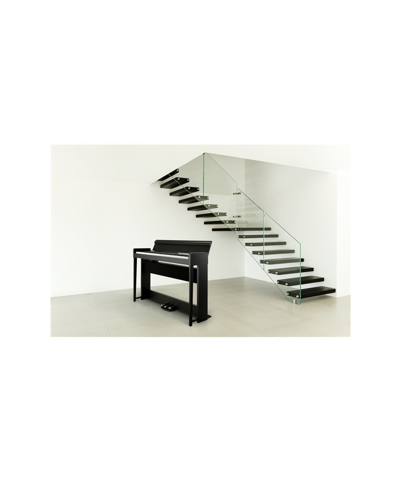 Amplificazione interna potente e dinamica 25W x 2, 3 pedali: Damper, Soft, Sostenuto con Half Pedaling, Stand e copritastiera.