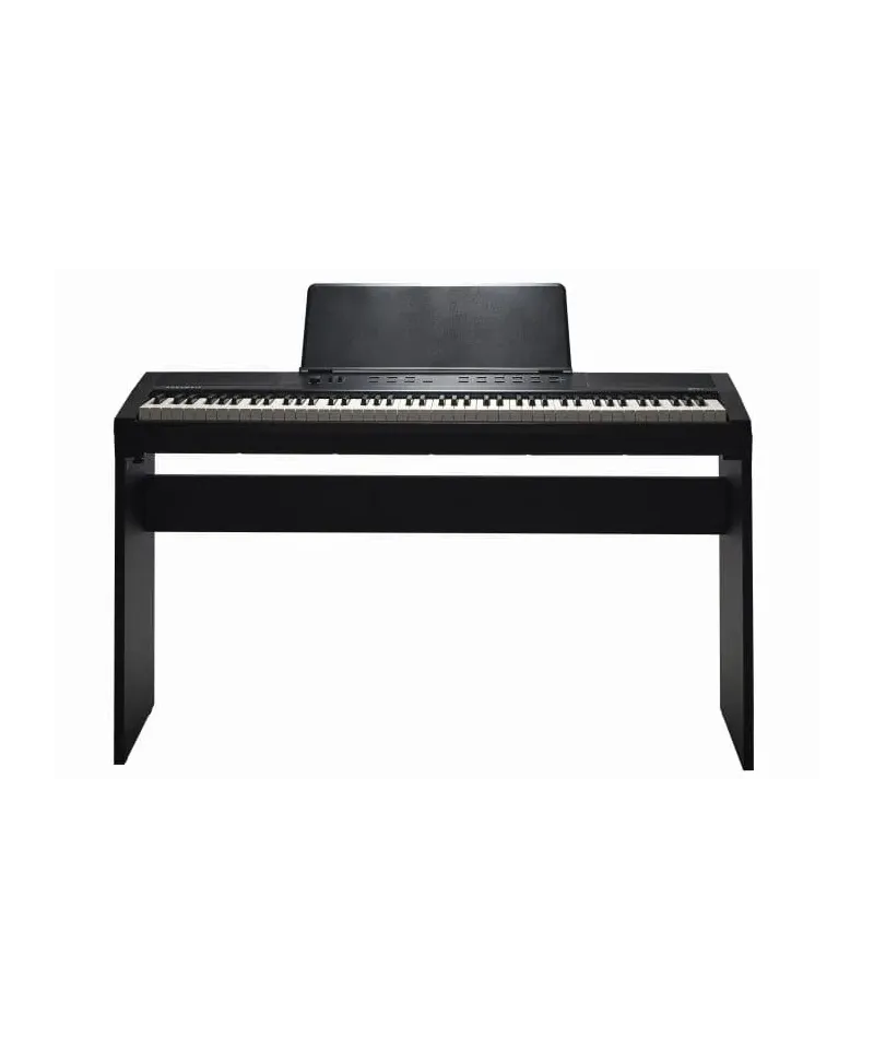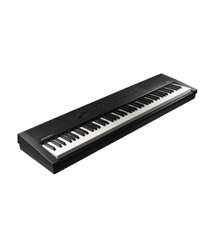 Il nuovo Kurzweil KaE1 ha una tastiera pesata con una polifonia di 128 note.Il KaE1 utilizza la libreria di suoni Kurzweil KORE 1.0 da 128 MB che include campioni di pianoforte di qualità derivati dalla linea di prodotti professionali, oltre a piano elettrico, organo, clavicembalo, archi, chitarra e basso.E’ possibile dividere la tastiera in 2 parti uguali (stesse ottave) per permettere a studente e insegnante di suonare, inoltre, scegliendo tra i 14 tempi del metronomo.Tramite il Bluetooth è facile collegarsi a Smartphone e Tablet.Un intuitivo registratore permette di salvare le proprie performace/brani direttamente sulla sua memoria interna.Il KaE1 dispone di un sistema audio integrato con 4 altoparlanti con amplificatore stereo da 15 W.Opzionale è lo Stand ST-3 che alla sua base ha i 3 pedali Funzione (soft/sostento/sustain) anche esso nella finitura Nero e Bianco.