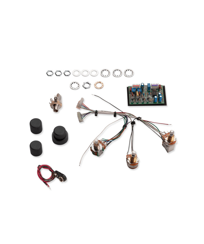 'High headroom, low-noise, 2-Band active onboard EQ preamp in two configurations voiced specifically for fretless basses with either active or passive pickups. Seymour Duncan Tone Circuits will add a tremendous amount of on-board tonal versatility to any dual pickup bass. Our design enables players to boost or cut specifically focused frequencies in order to achieve signature tones and to dial in a great sound no matter what the situation. We even added the two small trim pots on the circuit board can be tweaked to preset the frequency contour EQ just the way you want. The STC-2ASB and STC-2PSB Tone Circuits provides bass and treble controls, a master volume, a blend control, and our special frequency contour switch. These preamp were voiced by Steve Bailey to have two bands of focused EQ, together with a switch that engages a frequency contour optimized to bring out fretless harmonics as well as mid-range boost. The frequency contour is engaged by pulling up of the volume control. The STC-2ASB is designed to be paired with active pickups, while the STC-2PSB is designed to be paired with passives.The STC-2ASB and STC-2PSB will work in any fretless bass that is equipped with two pickups and has space for 3 control knobs (volume/freq switch, blend, concentric bass and treble controls) and a single 9v battery in the control cavity. Two 9v batteries can be wired together in series for added headroom. We include all necessary mounting hardware high-quality potentiometers on pre-wired harness, battery clip, and black anodized, knurled, dome-style knobs.'