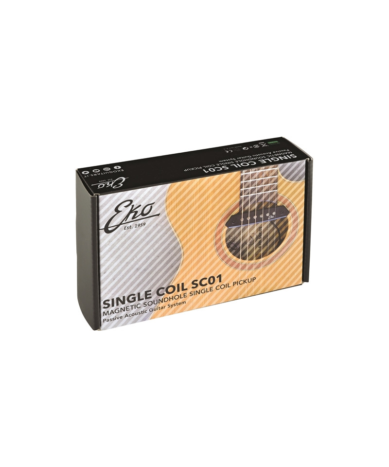 L' Eko Guitars SC01 Magnetic Soundhole singol coil è un pick up pensato per la chitarra acustica che grazie alla storica tecnologia a bobina sigola garantisce affidabilità e un suono brillante e distinto. SC01 è adatto per chitarre acustiche con buca di misura dai 90mm ai 105mm ed è facile da installare, si può installare in modo fisso oppure momentaneo senza bisogno di fare modifiche allo strumento. La batteria da 3V può essere utilizzata 105 ore continuativamente: si ricorda di scollegare il jack ogni qualvolta non si utilizzi lo strumento amplificato.