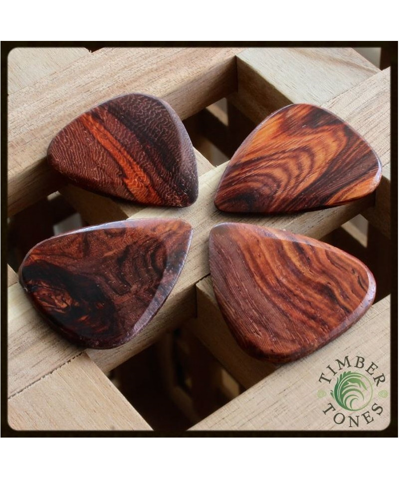 La serie di plettri Burma Padauk è una delle serie più belle dei plettri in legno toni vanno con con variegate venature arancio e marrone. La forma unica di TimberTones si basa sul disegno classico 351, tuttavia hanno uno spessore di 2,4 millimetri alla presa, una smussatura fino a 0,7 millimetri sulla punta.Burma Padauk è straordinario in quanto è relativamente duro, a differenza del Padauk Indiano. Offre per struttura, toni nitidi, puliti e brillanti, ottimo per le chitarre acustiche.
