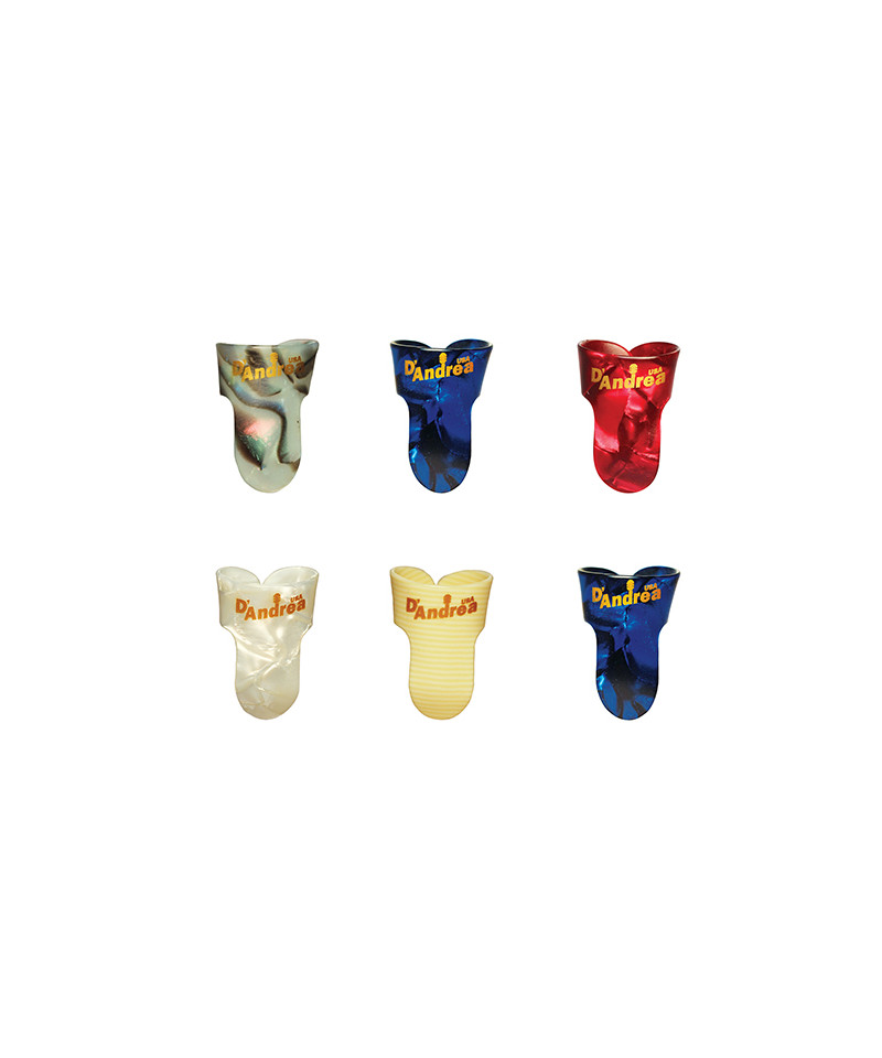 Progettati per offrire una diversa forma di controllo della pennata rispetto ai plettri piatti, i Fingerpicks in materiale plastico sono la soluzione per i musicisti di fingerstyle che preferiscono il tono offerto dalla plastica che colpisce le loro corde. I Fingerpicks D'Andrea possono essere utilizzati su quasi tutti gli strumenti a corda, dando al musicista una risposta tonale calda e un maggiore controllo.