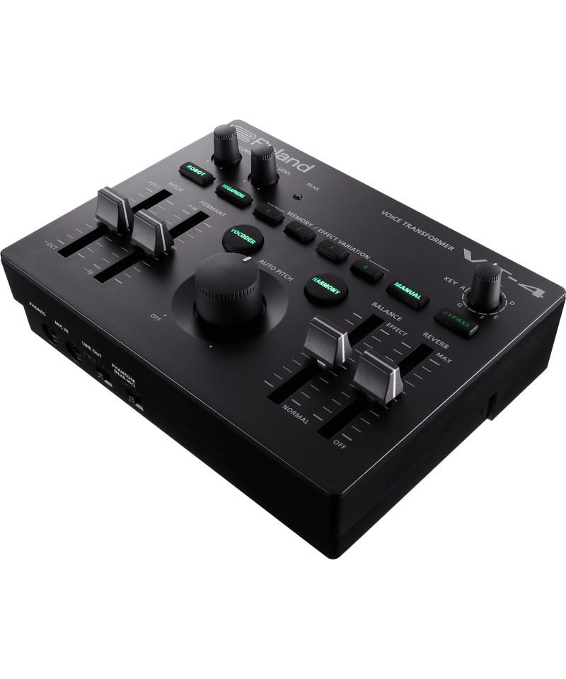 VT-4 è un processore effetti dedicato allo straordinario strumento che tutti possediamo: la nostra voce. E come la voce umana, VT-4 è facile da usare, e meravigliosamente efficace. Che siate un artista elettronico solista, un DJ, o il cantante in una band, VT-4 vi permette di creare e definire un suono unico per la vostra voce, dalle sottili correzioni alle trasformazioni più radicali. Avete tutto a portata di mano, senza navigazione nei menù o programmazioni che vi ostacolano. Premete un pulsante, ruotate una manopola e avete subito effetti strabilianti come armonizzazione, vocoder, trasposizione dell’intonazione, hard tuning, e molto altro ancora. E con le sue dimensioni compatte e cinque ore di autonomia a batterie, potete utilizzare VT-4 ovunque.