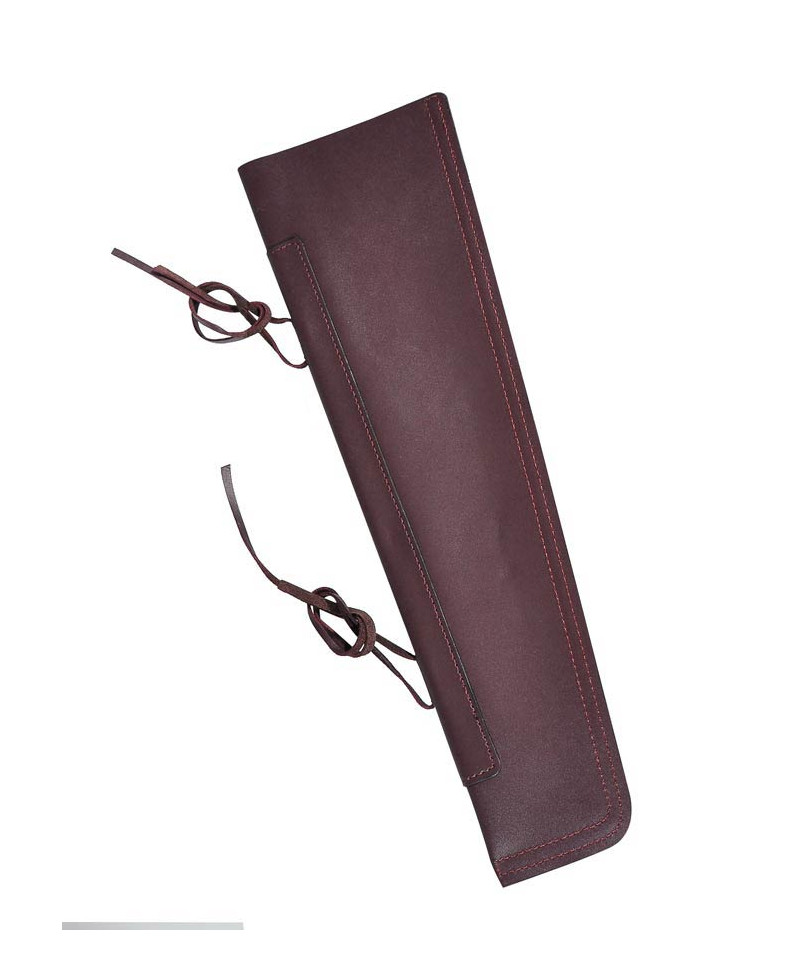 Marsupio in pelle per poggiare l'arco da contrabbasso. Fissabile alla cordiera del contrabbasso tramite lacci