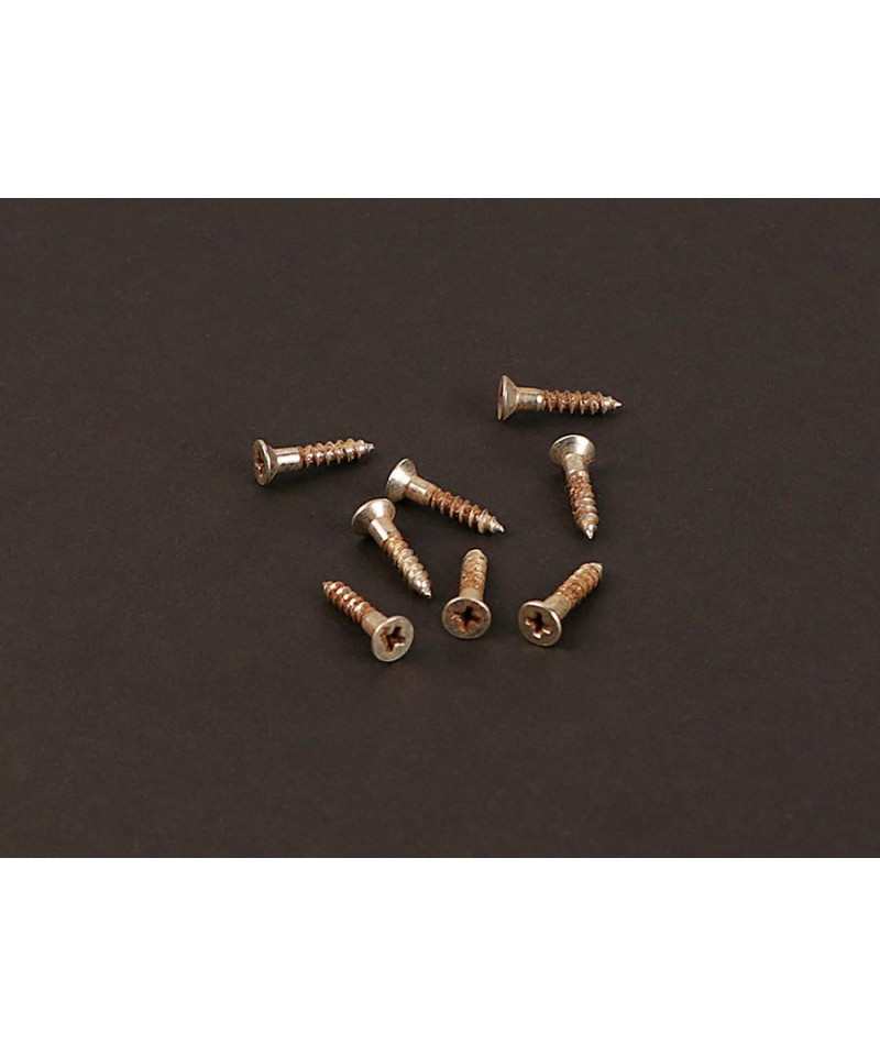 Viti per montaggio pickup, testa piatta, 2.4mm x 13mm, nickel relic, per 2 pickup. Reliccate intenzionalmente per adattarsi a strumenti vintage. Confezione da 8pz. Made in Japan.
