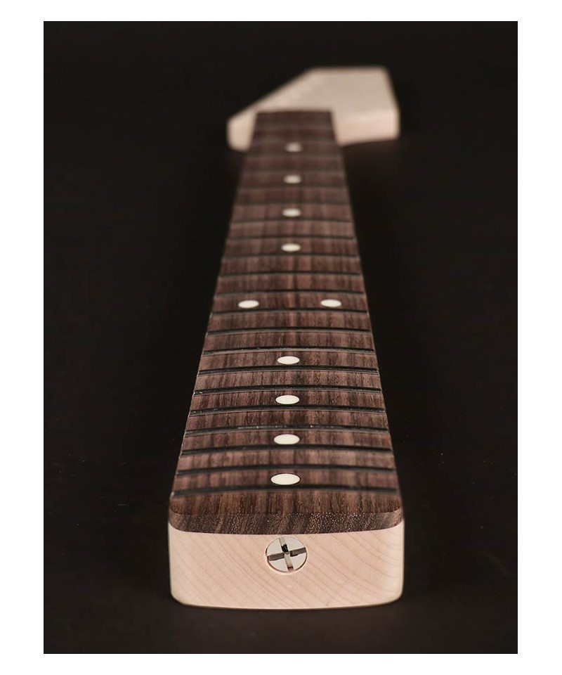 Manico per chitarra elettrica, modello ST, moderno, in acero, tastiera in palissandro, profilo oval c, radius 9,5'', 21 tasti misura 6105, made in Japan. Lo spessore del manico al primo tasto è di 22mm, al dodicesimo è 24mm.