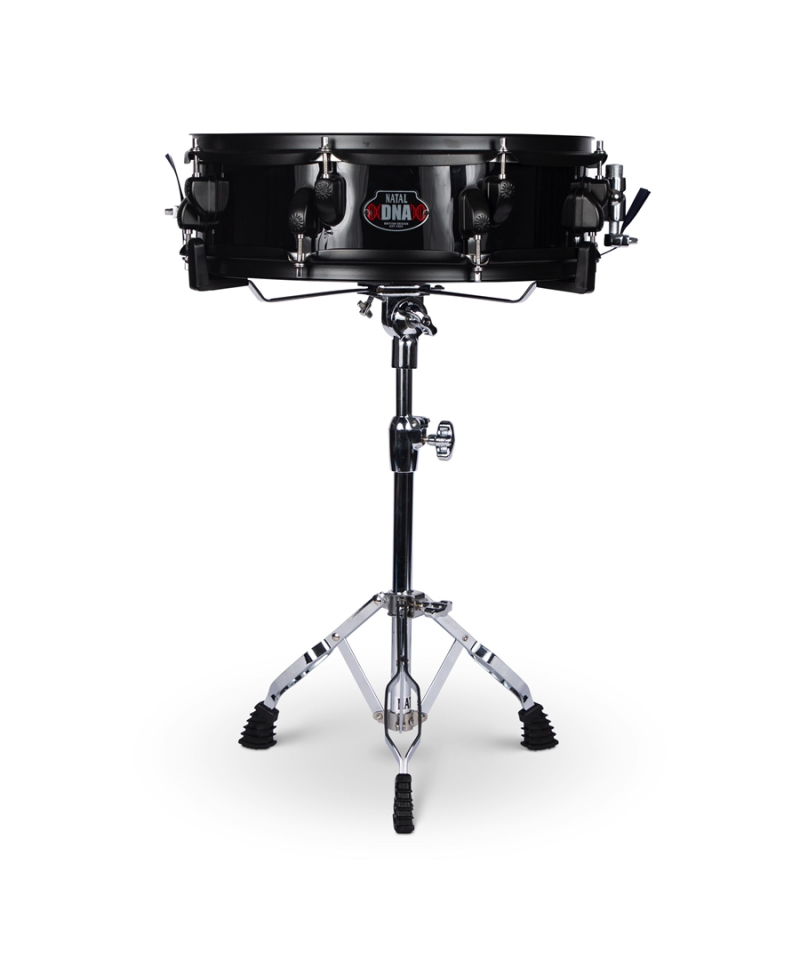 Il DNA Stealth Snare è un Pack composto da un rullante con un resistente fusto da 14”x4” realizzato in legno di tiglio a 6 strati, in finitura Black Stealth Wrap, con pelli mesh e blocchetti e cerchi di colore nero, un reggi rullante, bacchette e una resistente custodia per il trasporto.