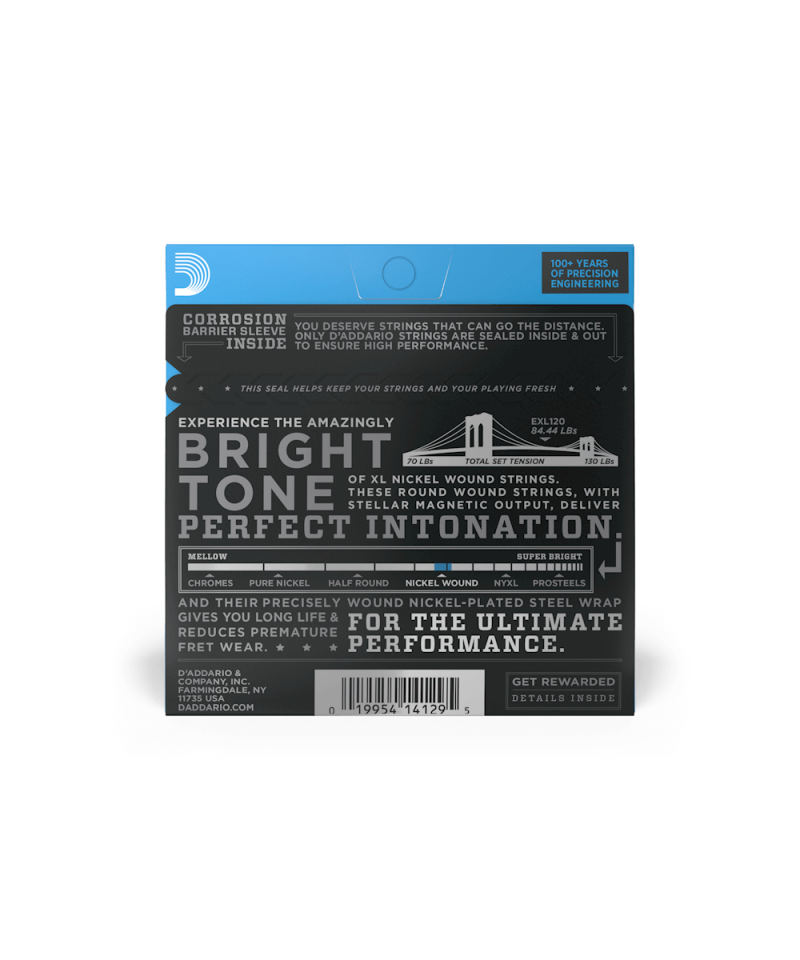 EXL120 è un set calibro super leggero con la massima flessibilità e tono pungente. Le corde per chitarra elettrica XL Nickel Wound, riconosciute da tempo come standard del settore, sono ideali per un'ampia gamma di stili musicali