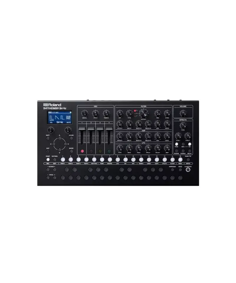 Ecco il Synthesizer SH-4d, la potente unità desktop dal workflow fluido e diretto con dettagliate funzionalità di sintesi, per creare i suoni di ieri, di oggi e di domani. Crea momenti musicail innovativi e originali con 11 Modelli di OSC, un pattern sequencer multitimbrico, un'ampia scelta di effetti e una polifonia inesauribile. E con un pannello completo, controlli dinamici, la registrazione dei motion e molto altro, puoi creare suoni e composizioni in continua evoluzione, come le tue idee. Ugualmente adatto per lo studio, il palco e per viaggiare, SH-4d è un synth incredibilmente versatile, che libera la tua ispirazione dall'istante in cui lo accendete. Gli undici OSC Model mettono a disposizione la più ampia e variegata potenza di creazione sonora: dai suoni di synth analogici vintage e basati sulla PCM, fino ai timbri digitali più rivoluzionari e innovativi. Inoltre, c'è anche un versatile drum synthesizer con potenti capacità di modifica del suono, per creare da zero kit personalizzati. Ispirato ai leggendari sintetizzatori Roland SH, il nuovo SH-4d Model permette di costruire corposi suoni vintage in stile analogico, con un massimo di quattro forme d'onda diverse. Oppure, scegli SH-3D Model, che dispone di un LFO extra al posto della quarta parte. C'è anche un versatile Chord Model per creare sequenze di accordi complesse, con singole note e semplici movimenti del cursore. Dai vita a moderne texture con il Cross FM Model a due operatori. Sviluppa suoni complessi e mutevoli, grazie al potente Wavetable Model. O usate il Drawing Model per disegnare le tue forme d'onda e creare suoni mai sentiti prima. Crea audaci texture metalliche con il Ring Model, che offre complete possibilità di modifica del suono grazie ai parametri Crossfade, Waveshape, Tuning e molti altri ancora. E con il Sync Model, è facile creare suoni di oscillatori sincronizzati, ricchi di armonici in evoluzione, con un potente controllo dell'inviluppo. SH-4d è anche ricco di sonorità influenti dello storico passato Roland. Crea classiche timbriche analogiche con gli autentici suoni dei Modelli SH-101 e JUNO-106. E getta le basi delle tue tracce con il PCM Model e la sua ampia selezione di suoni basati su campionamenti dalla nostra libreria storica. La parte ritmica dedicata è dotata di 49 kit preset e 64 slot per salvare i tuoi. Hai 26 strumenti in un kit, ognuno con un massimo di due forme d'onda in layer, equalizzatori dedicati e una scelta di funzionalità di sintesi per modellare i vostri suoni alla perfezione.