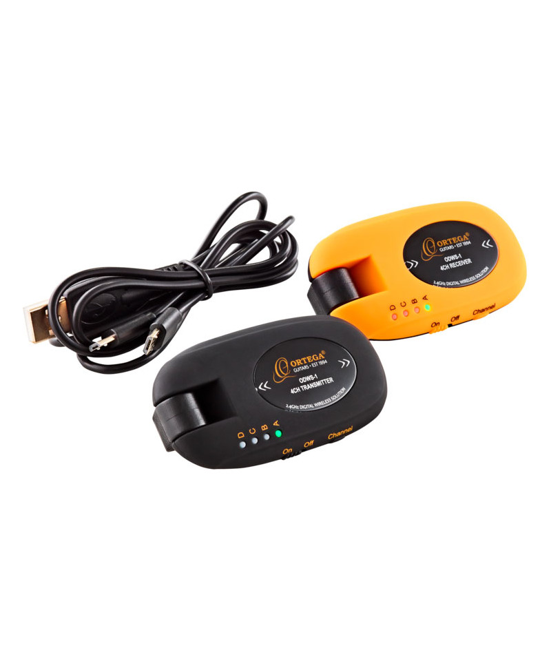 Sistema wireless per strumenti attivi e passivi. Lavora a 2,4 GHz ISM senza interferenze. Fino a 30 metri di copertura. Con batterie ricaricabili via USB sia per il trasmettitore che per il ricevitore. 5 ore di autonomia. 4 canali selezionabili e visualizzati con led luminosi. Possibilità di usare altri 3 sistemi aggiuntivi per un totale di 4 simultanei. Trasmissione a 24 bits/48kHz senza compressione. Plug and play. Stand by dopo 10 minuti di inutilizzo. Include trasmettitore nero, ricevitore arancione e cavo USB per ricarica.