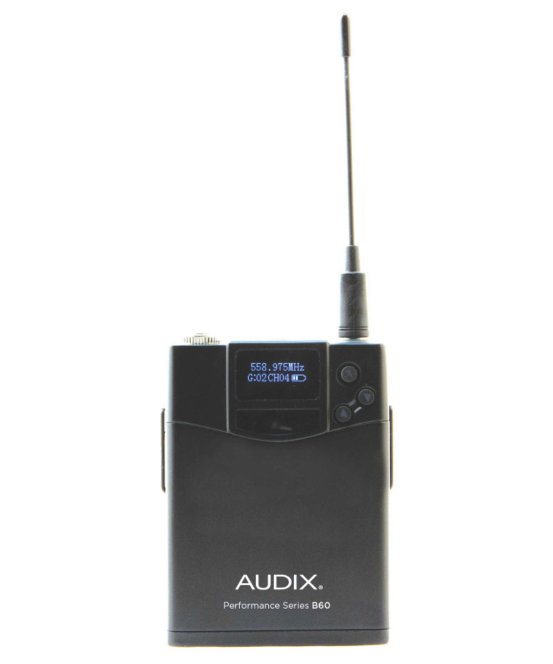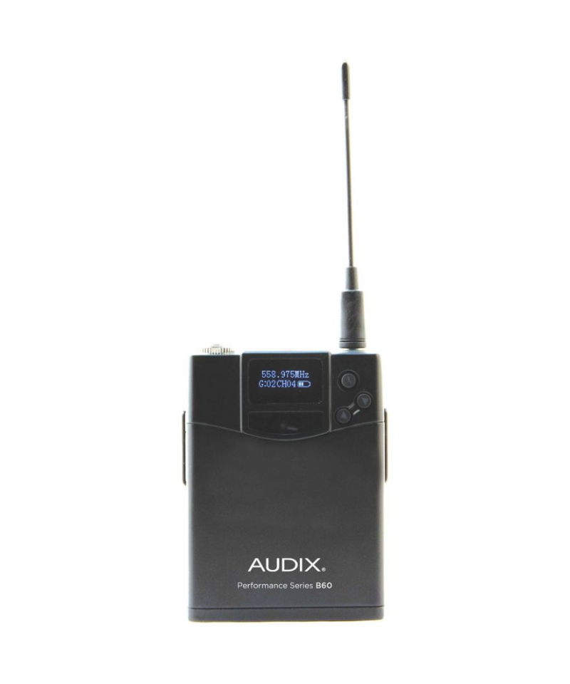 Trasmettitore wireless Bodypack B60 per la gamma di microfoni Audix AP40 e AP60 (AP41, 42, 61, 62). Frequenze da 522 a 586 MHZ.