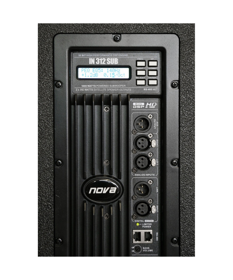 Sub attivo con 3 finali integrati (2 colonne + 1 sub), adatto a installazioni fisse e mobili, equipaggiato con un woofer da 12" in neodimio. IN312 SUB è molto flessibile, ideale per parlato e applicazioni musicali come subwoofer in sistemi di amplificazione più complessi (in combinazione con i diffusori a colonna IN6 e il sub passivo IN12 dà vita al sistema i.Nova 360 Plus). Il telaio è costruito in multistrato di betulla da 15mm con finitura nero NOVA Polycoat©. Il cabinet rettangolare è dotato di otto maniglie e di una griglia anteriore metallica ricoperta in schiuma di carbone.