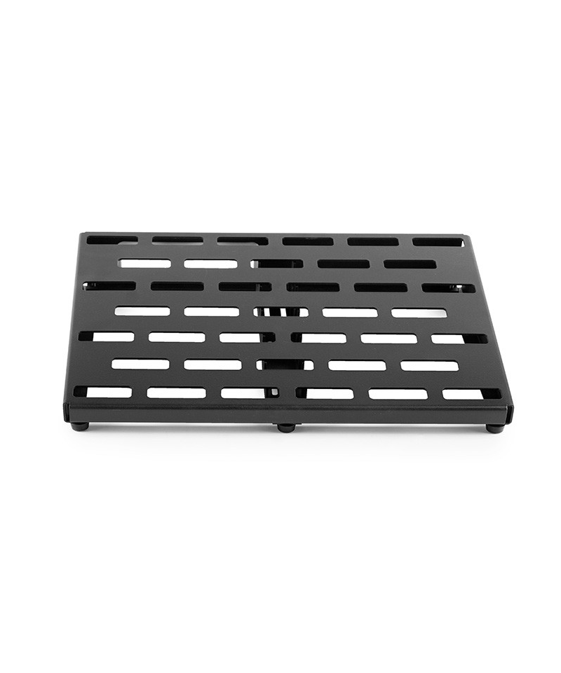 La serie di pedaliere RockBoard stata completamente riprogettata per creare una pedaliera leggera, rigida e robusta e che consente l'uso di una moltitudine di pedali e soluzioni di montaggio dell'alimentatore. La sua costruzione straordinariamente ingegnosa si basa su un solo foglio di alluminio piegato e laminato a freddo per il telaio del pannello e non ha una sola saldatura. Questo rende la superficie della pedana completamente liscia e ti d pi spazio sulla pedaliera. Le staffe di supporto verticali a forma di U offrono ulteriore stabilit senza aggiungere troppo peso. Le pedaliere RockBoard non si piegheranno n si muoveranno. L'innovativo design basato su slot funziona altrettanto bene con le nuove piastre di montaggio dei pedali RockBoard Quick Mount (vendute separatamente) e con le soluzioni di montaggio standard (velcro, fascette per cavi). Gli slot consentono inoltre di nascondere facilmente i cavi sotto la superficie per una configurazione pulita e ordinata. Inoltre, qualsiasi alimentatore pu essere montato sotto la superficie della pedana o utilizzando la soluzione di montaggio dell'alimentatore universale RockBoard The Tray opzionale. Tutti i modelli della serie RockBoard (eccetto Duo 2.1) sono compatibili con i patchbay RockBoard MOD.