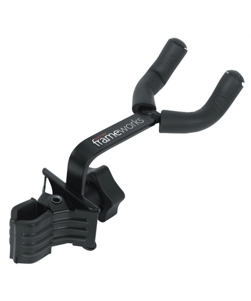 Gancio per ukulele / mandolino con fissaggio su asta microfonica. Aiuta a ridurre al minimo l'ingombro sul palco eliminando la necessità di un supporto aggiuntivo.